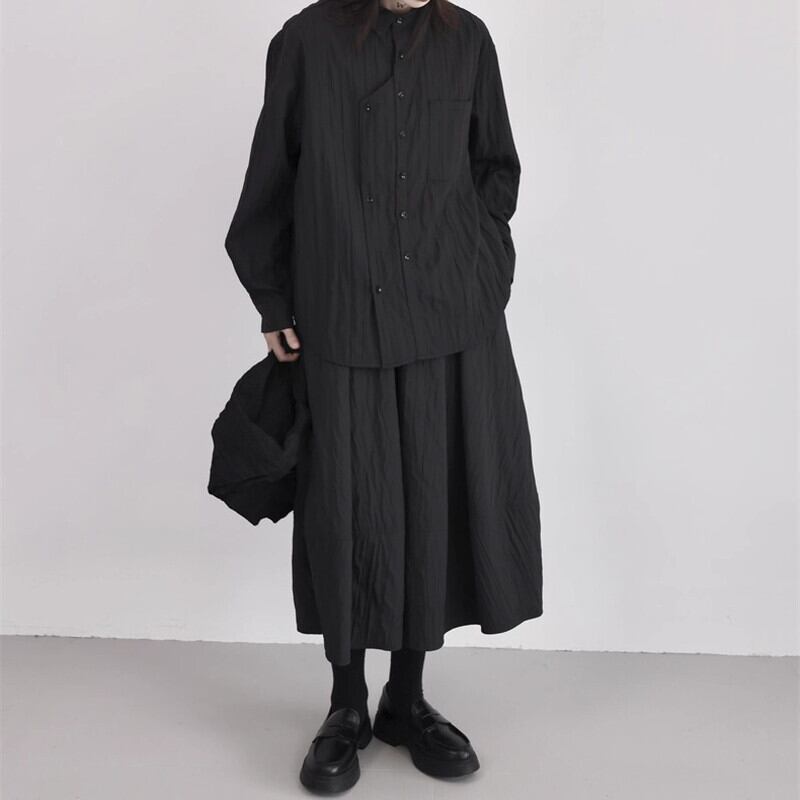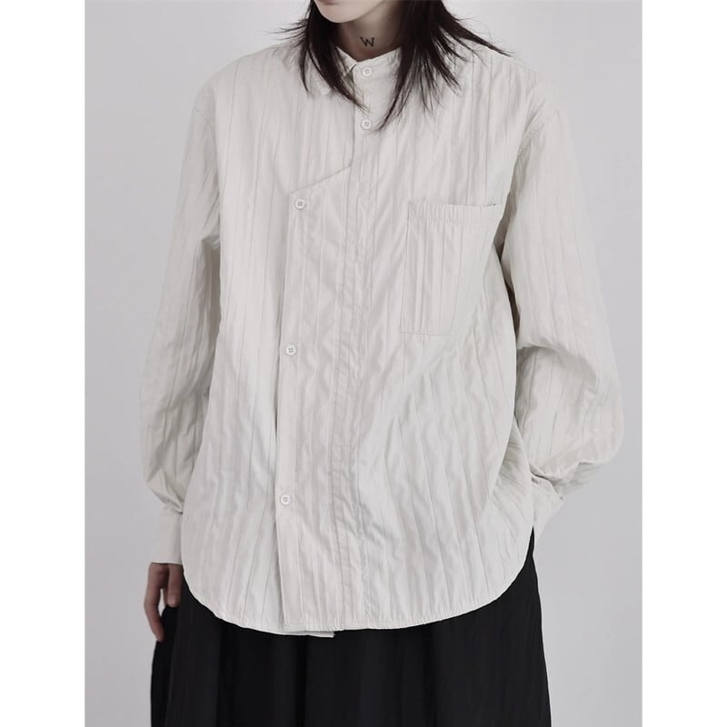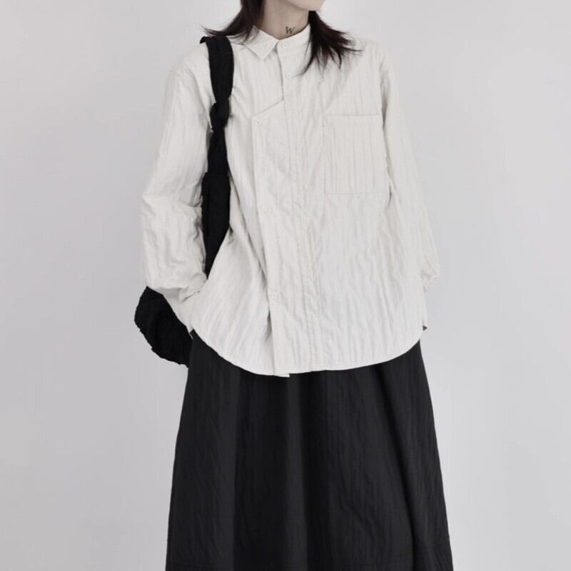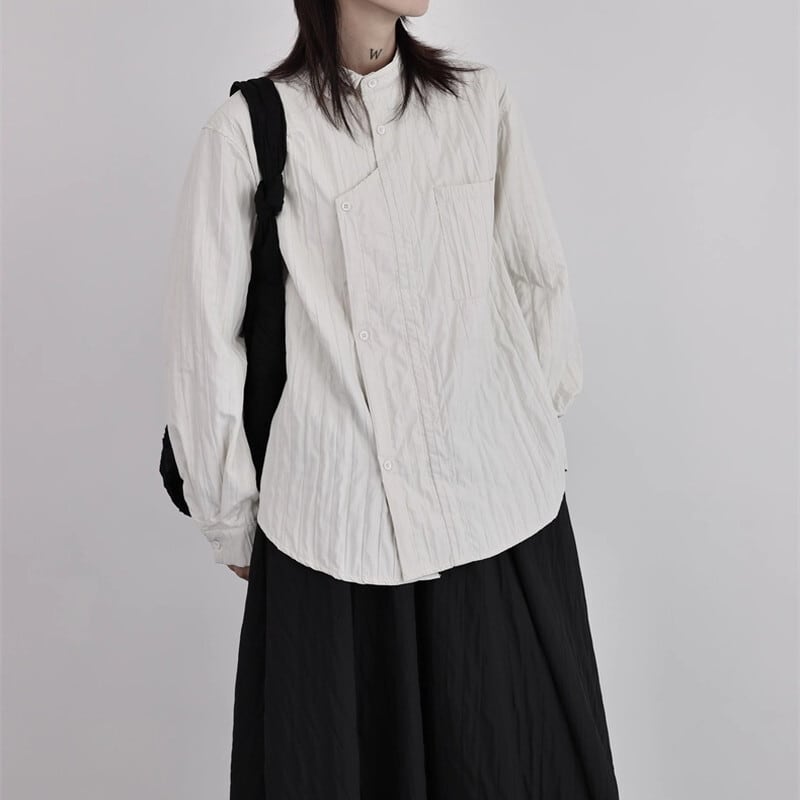 Asymmetry Pleats Collared Shirt【TR3100】
