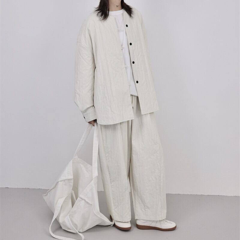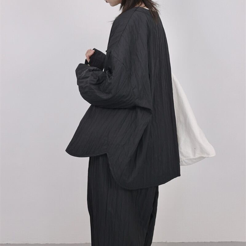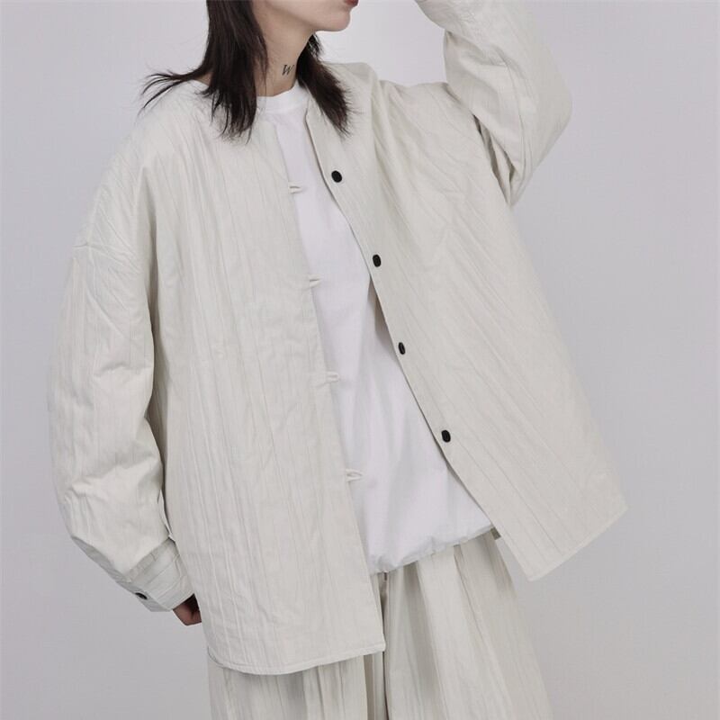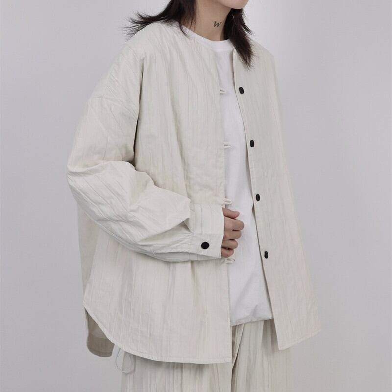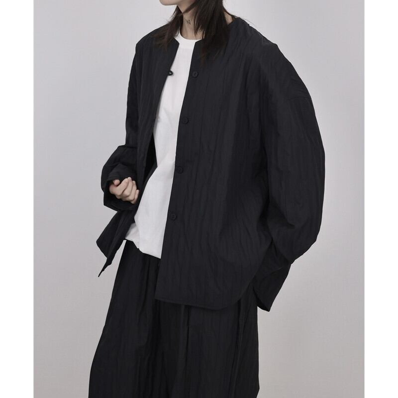 Pleats No-Collar Collared Shirt【TR3120】