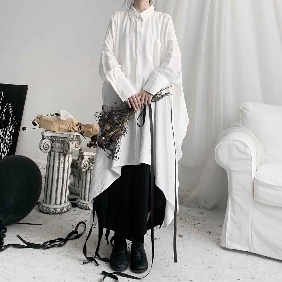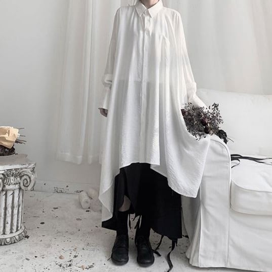 〈Unisex〉Irregular Long Huge Shirt【TR1411】